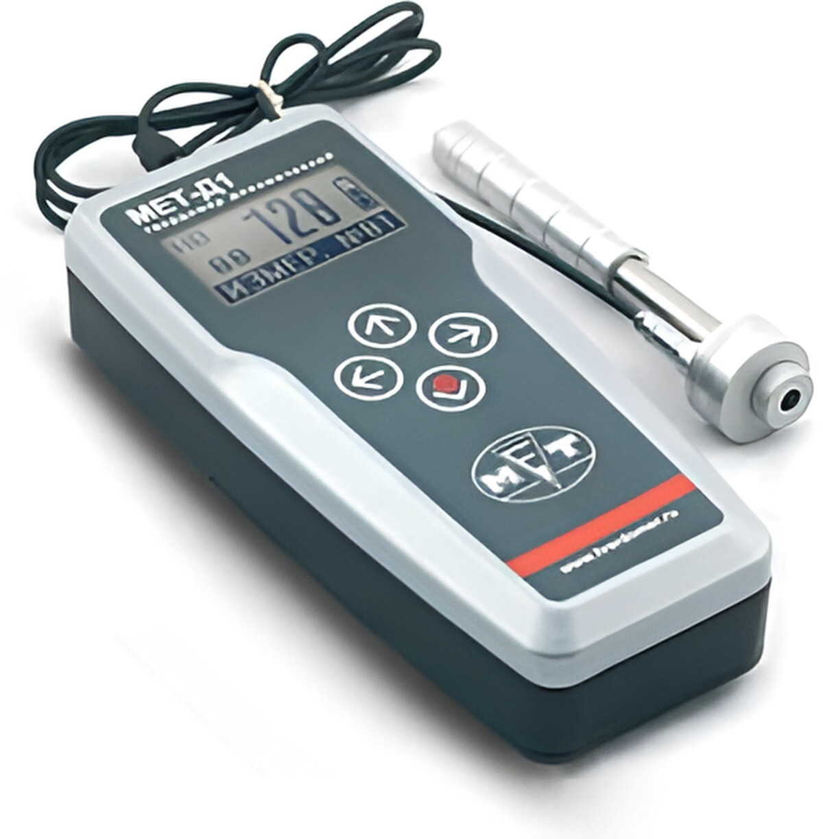 Действует по принципу определения отношения скоростей индентора до и после соударения с поверхностью контролируемого изделия.