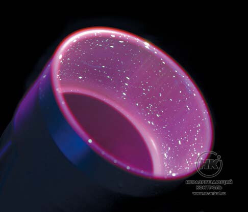 Перед инспекцией избыток проявителя следует удалить с помощью сжатого воздуха (max. 0.3 бар/5psi). Исследуемые изделия контролируют под УФ-освещением (УФ-интенсивность минимум 1000 мкВт/см2) в затемненном помещении.