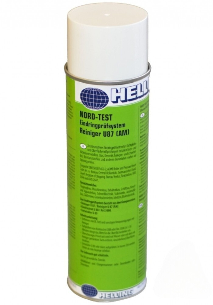 Очиститель Helling U87 предназначен для проведения капиллярного контроля. Применяется в составе серии NORD-TEST с пенетрантом Rot 3000, U88 и проявителем U89 для обнаружения дефектов, выходящих на поверхность объекта контроля. Диапазон рабочих температур от -10 до +50С°.