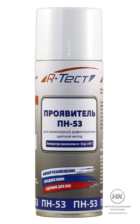 Низкотемпературный проявитель R-Тест ПН-53 используется для образования иобнаружения индикаторных следов, образуемых пенетрантом в местах выхода наповерхность полостей дефектов.