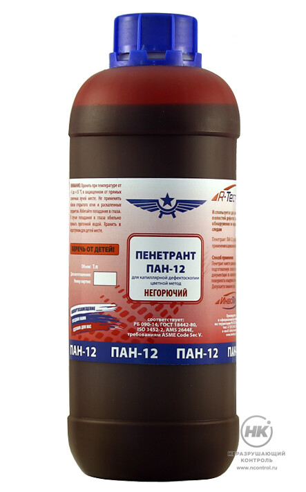 Пенетрант для аэрокосмической отрасли ПАН-12 предназначен для проведения дефектоскопии изделий аэрокосмической промышленности на линиях капиллярного контроля.
