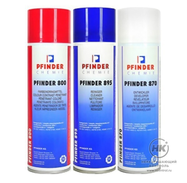 | PFINDER 800 | Дуальный (контрастный и люминесцентный) пенетрант. Четкие стабильные индикации, малиновые при дневном свете и ярко-янтарные при ультрафиолетовом освещении. Удаляется водой и очистителем. 1 класс чувствительности по ГОСТ 18442. Температурный диапазон - от -20 до +100 C. Аэрозольная упаковка 500 мл. Используется с проявителями PFINDER 870 или PFINDER 970 и очистителем PFINDER 895. Соответствует требованиям и спецификациям EN ISO 3452-2, 3452-5, 3452-6, ASTM E165, ASME V Art.6, PMUC, RCCM. Аэрозольная упаковка 500 мл. |