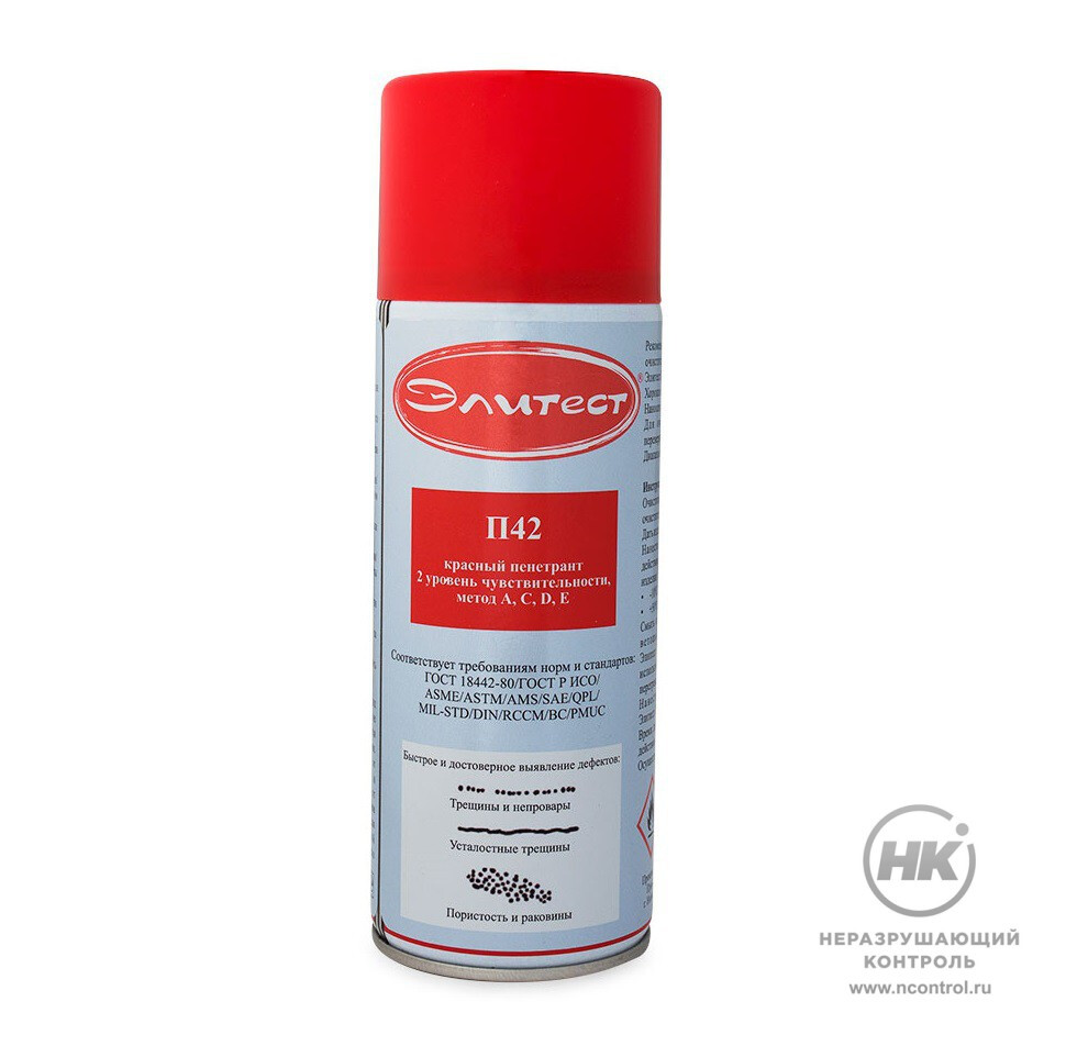Пенетрант «Элитест П42» красного цвета предназначен для обнаружения поверхностных дефектов.Может применяться в системах электростатического нанесения.