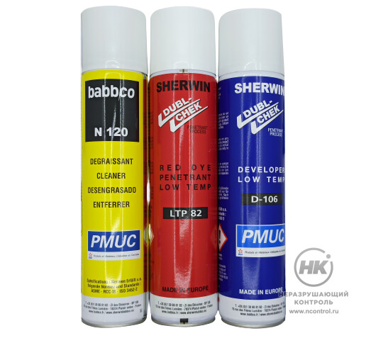 Поставка химии для капиллярной дефектоскопии Sherwin возможна как укомплектованными наборами, так и реагентами индивидуально для каждого этапа контроля - очистителя N-120, проявителя D-106 или пенетранта LTP-82.