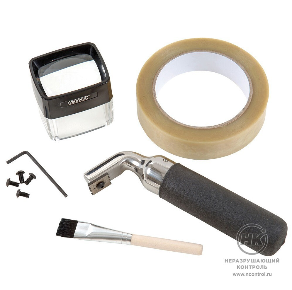 Полный набор: Износостойкая рукоятка, режущий элемент, ключ-шестигранник, инструкция по эксплуатации с таблицей классификации результатов адгезии, лупа, щетка и адгезивная лента (по стандарту ISO или ASTM), все упаковано в прочный чемодан из АБС пластика. |
