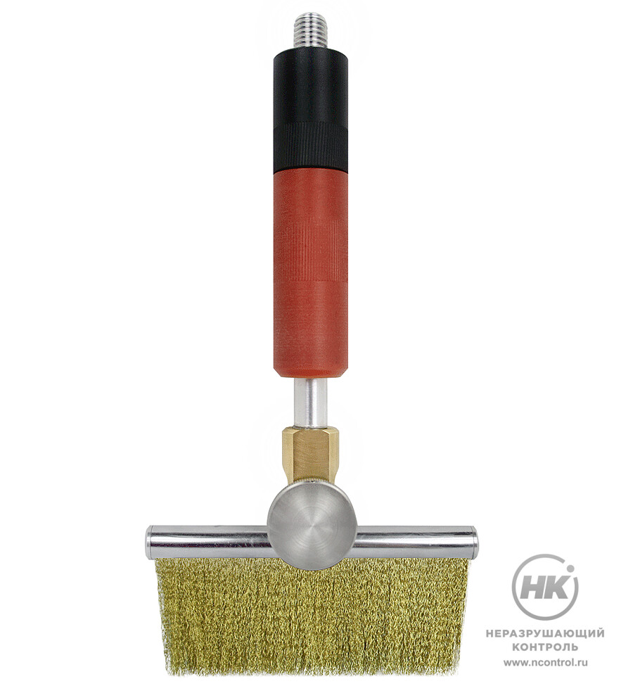 Щёточный волосяной электрод стыкуется с высоковольтным трансформатором-держателем напрямую или через удлинитель. Оператор вручную щёточной частью контролирует поверхность покрытия. Контактная поверхность электрода изготовлена из мягкой тонкой проволоки.