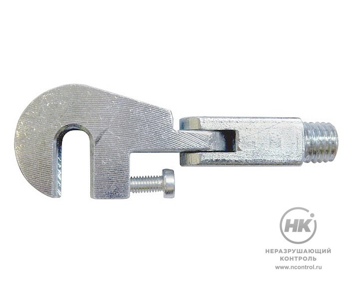 Захват предназначен для соединения концевых гаек пружинного электрода на трубе. Используется для присоединения электрода к удлинителю высоковольтного трансформатора-держателя электроискровых дефектоскопов «Корона 1»«Корона 2.1», «Корона 2.2».