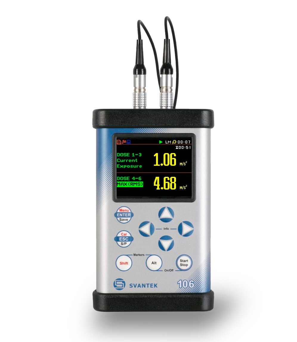 SV-106 – новейший шестиканальный виброметр и анализатор спектра для измерения общей и локальной вибрации, воздействующей на организм человека.