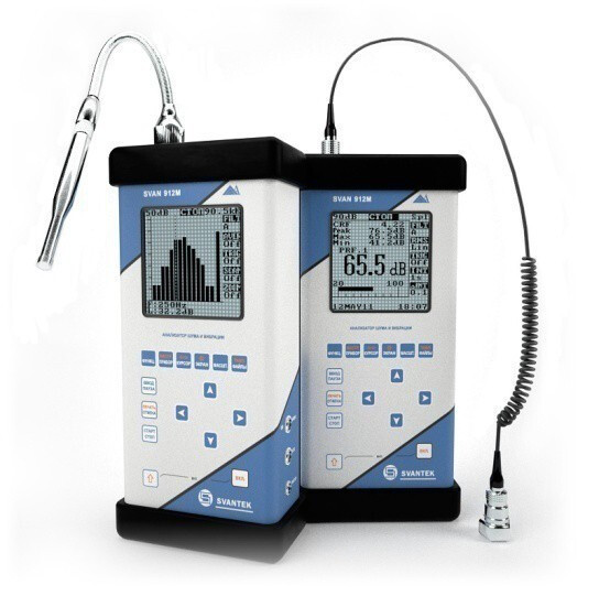 SVAN-912M — цифровой, 1-го класса точности анализатор звука и вибрации, предназначен для акустических измерений, мониторинга шума окружающей среды, оценки влияния шума и вибрации на здоровье человек, контроля технического состояния машин.
