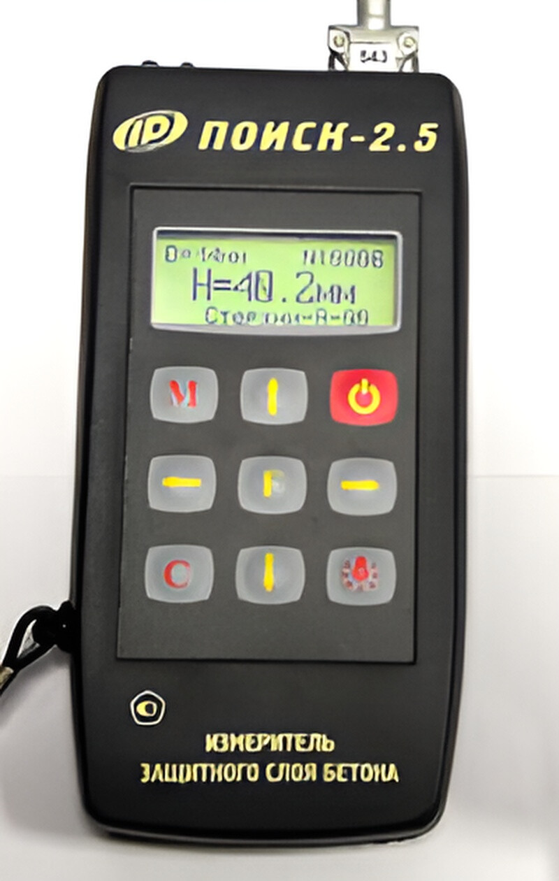 Измеритель защитного слоя бетона Поиск 2.52 предназначен для оперативного контроля армирования железобетонных изделий и конструкций магнитным методом (ГОСТ 22904).