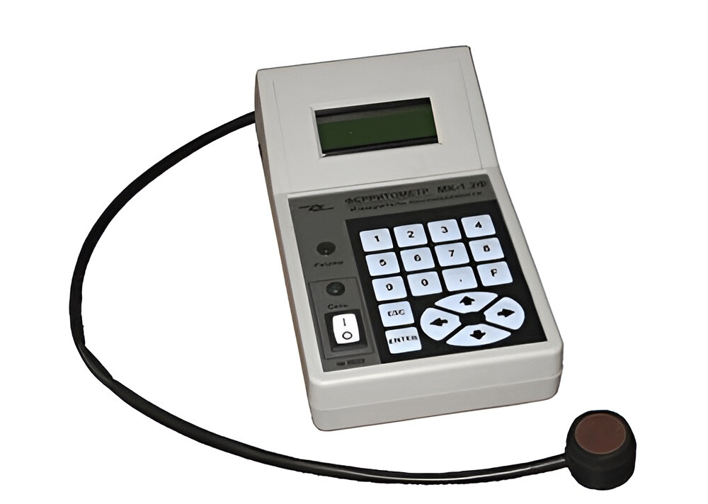 Ферритометр универсальный МК-1.2Ф намагничивает участок изделия или объемного образца импульсным полем и регистрирует параметр измерительного сигнала, пропорционального намагниченности насыщения материала. Так как выходной сигнал пропорционален намагниченности насыщения материала, то показания ферритометра зависят только от содержания феррита, и не зависят от формы, дисперсности феррита и других структурных неоднородностей. Поэтому, ферритометр обеспечивает высокую достоверность контроля и линейность показаний во всем диапазоне измерения ферритной фазы.