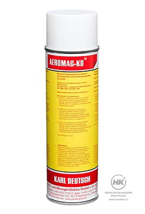 Флюоресцентная магнитная суспензия AEROMAG-KD HS-0 на масляной основе для магнитопорошковой дефектоскопии с применением источника УФ-излучения, подходит для проведения инспекции прямо наместе. Готова к использованию.