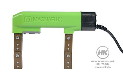 При помощи электромагнита MAGNAFLUX Y-7 осуществляют магнитопорошковый контроль. Универсальный и мощный прибор обеспечивает устойчивое магнитное поле как переменного тока для обнаружения поверхностных дефектов, так и импульсное поле постоянного тока для обнаружения около поверхностных и поверхностных дефектов.