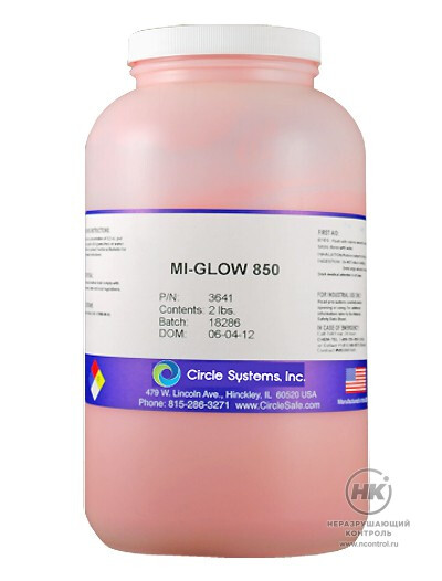 Магнитный порошок Mi-Glow 850 состоит из красных флюоресцирующих частиц со специальным смачивающим веществом для использования в водных средах. Предназначен для выявления дефектов при обычном освещении и в ультрафиолетовом свете.