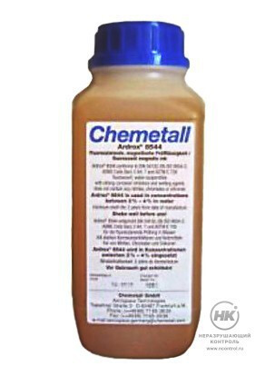 Флюоресцентный магнитный концентрат Ardrox 8544 на водной основе используется для магнитопорошкового контроля всех видов поверхностей ферромагнитных изделий под УФ-светом.