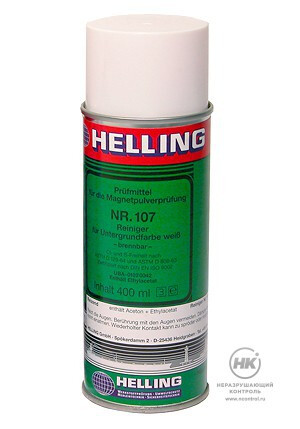 Очиститель HELLING NR 107 используется для растворения и удаления белой фоновой краски при проведении магнитопорошкового контроля.