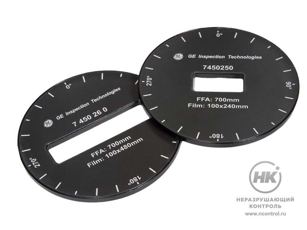 Набор из двух сменных свинцовых диафрагм с угловой шкалой и окном с размерами, соответствующими форматам рентгеновской плёнки 100×480 мм и 100×240 мм. Набор входит в перечень оригинальных дополнительных принадлежностей для рентгеновского аппарата Eresco42MF3/4.
