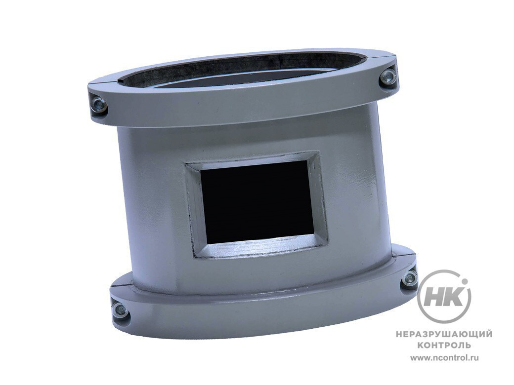 Приспособление-коллиматор для рентгеновских моноблочных генераторов линейки РПД. Используется во время проведения рентгеновского контроля аппаратами с панорамным выходом излучения. Применяется при фронтальном просвечивании объекта контроля, когда требуется ограничить выход первичного излучения и получить направленный пучок с заданным телесным углом. Телесный угол зависит от размеров окна диафрагмы устройства. Требуемые параметры необходимо указать в заявке.