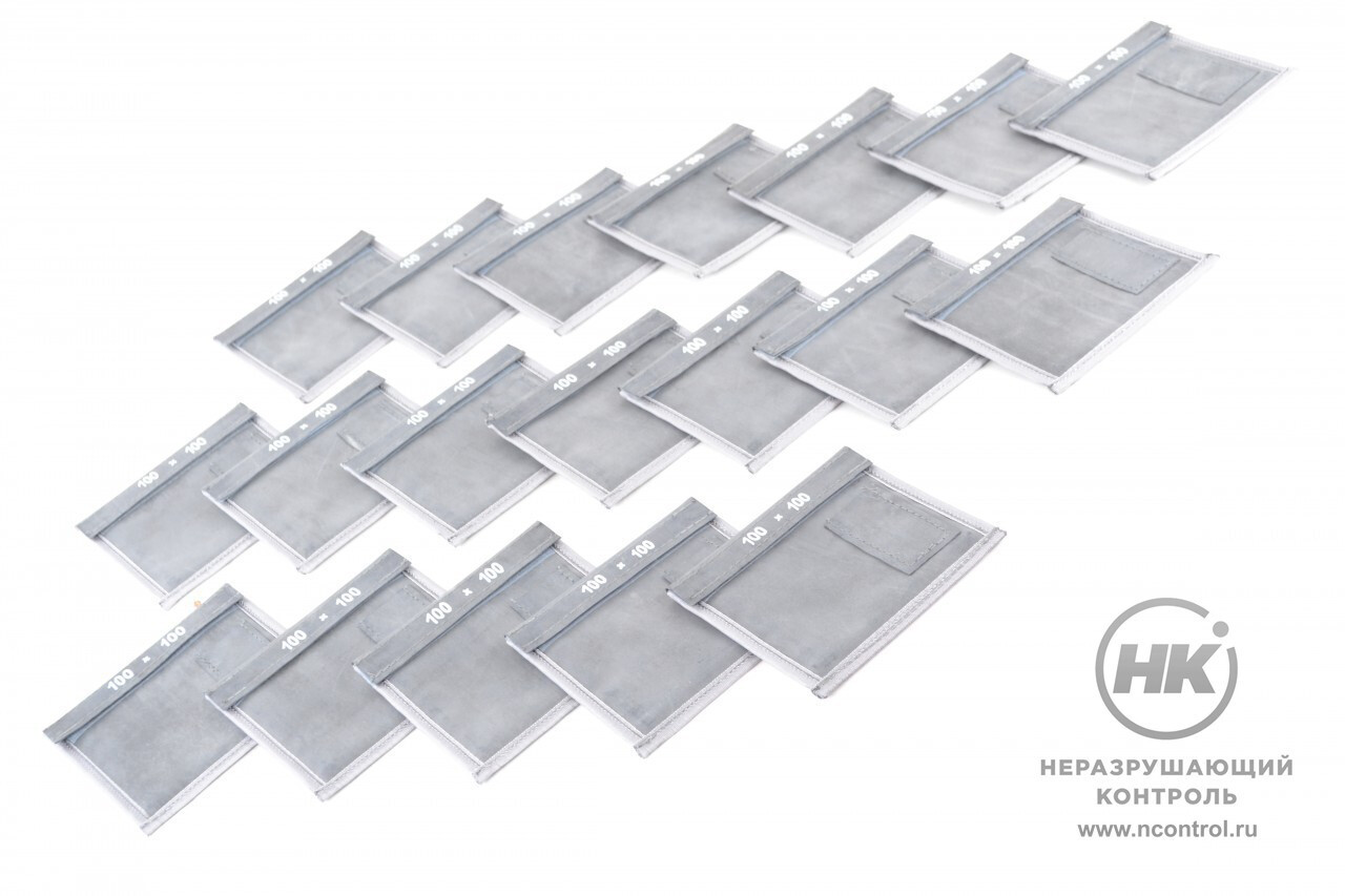 С внешней стороны находятся карманы для маркировочных знаков и эталонов чувствительности. Внутри располагается плёнка и усиливающий экран.