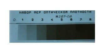 Линейка оптической плотности предназначена для оценки плотности почернения рентгеновской плёнки и настройки денситометров.