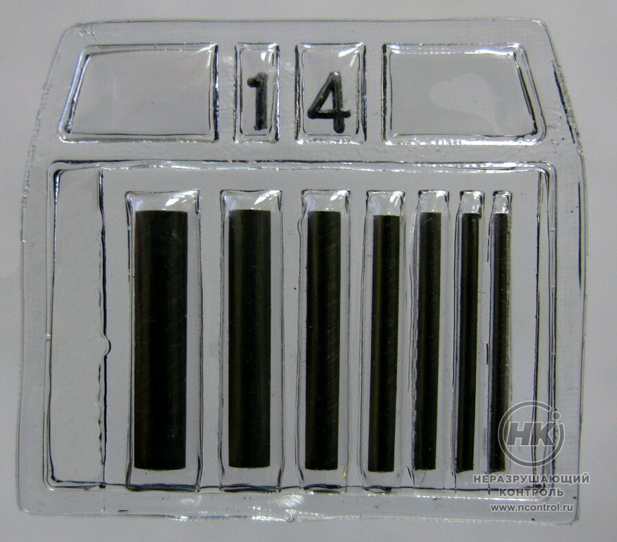 Проволочные эталоны чувствительности по ГОСТ 7512-82 — это семь параллельных проволок длиной 20 мм, у каждой из них свой диаметр. Для удобства они заключены в пластиковый чехол с указанием номера эталона.