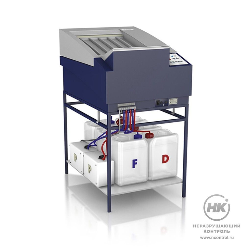 XR 35 NDT mobile быстро монтируется при помощи встроенных уровней и регулируемого подрамника. Насосы отвечают за автоматическое заполнение химреактивами.