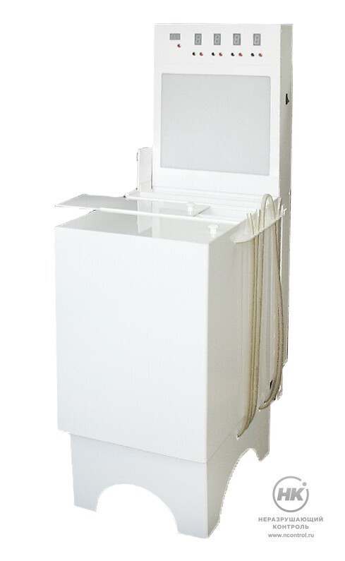 Установка УФРН-1 для ручного проявления рентгеновской плёнки используется в составе фотолабораторного оборудования при промышленной дефектоскопии. Оснащена системой поддержания температуры проявителя, неактиничным фонарём, негатоскопом, таймером.