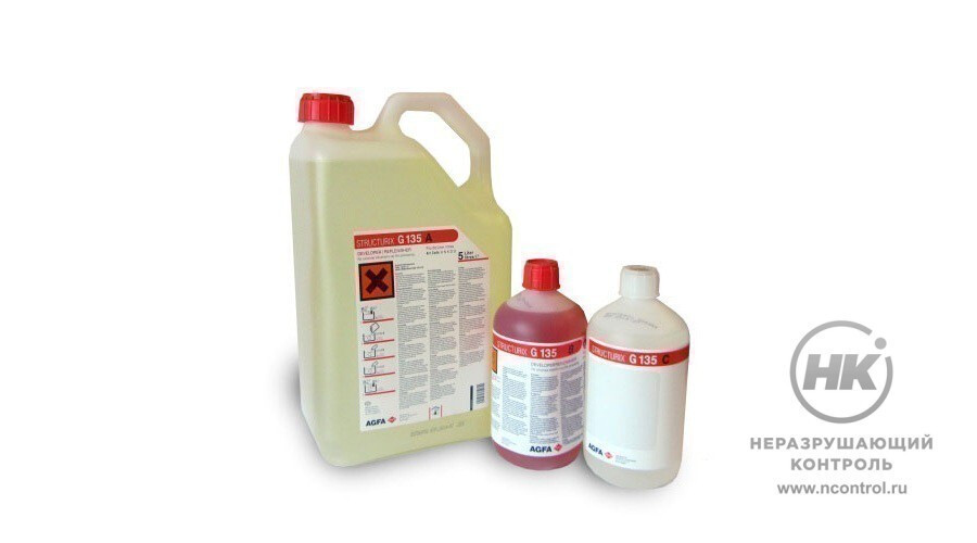 Жидкий проявитель AGFA Structurix G135 предназначен для автоматической обработки рентгеновских пленок. Поставляется в коробке, содержащей два одинаковых полукомплекта, каждый из которых состоит из трех компонентов. Каждый из полукомплектов может быть разведен до 20 литров рабочего раствора.