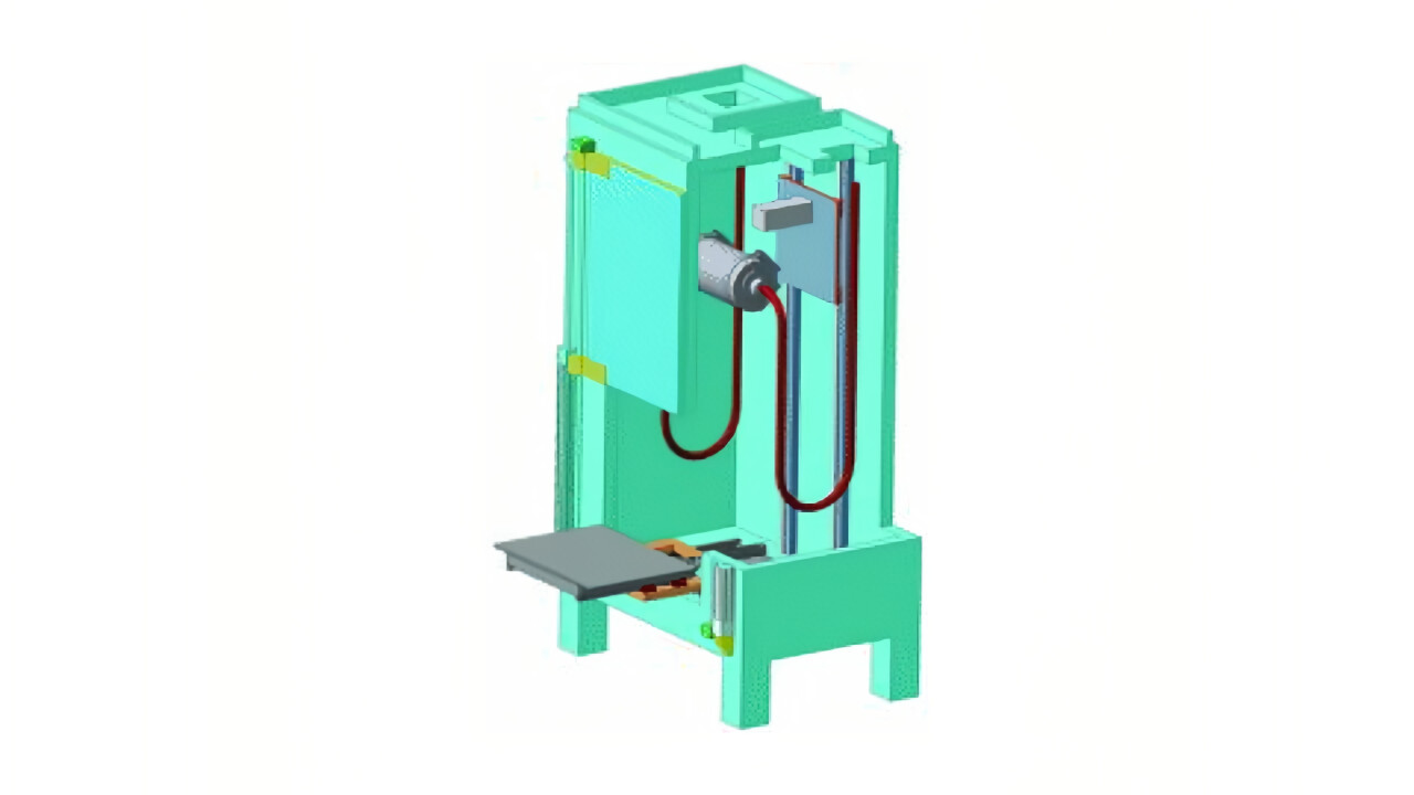Рентгеновский аппарат вместе с вертикальным механизмом перемещения рентгеновской трубки размещается в компактной рентгенозащищенной кабине. Внутри расположен столик для просвечивания. По команде оператора столик выезжает из кабины для удобной укладки изделий. После укладки столик автоматически задвигается в кабину, производится просвечивание и столик выдвигается обратно.