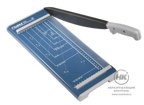 Резак сабельный Dahle 502 предназначен для небольшого объёма работ. Рабочий стол выполнен из металла. Длина реза — 320 мм. Есть разметка под форматы А6 – А4.