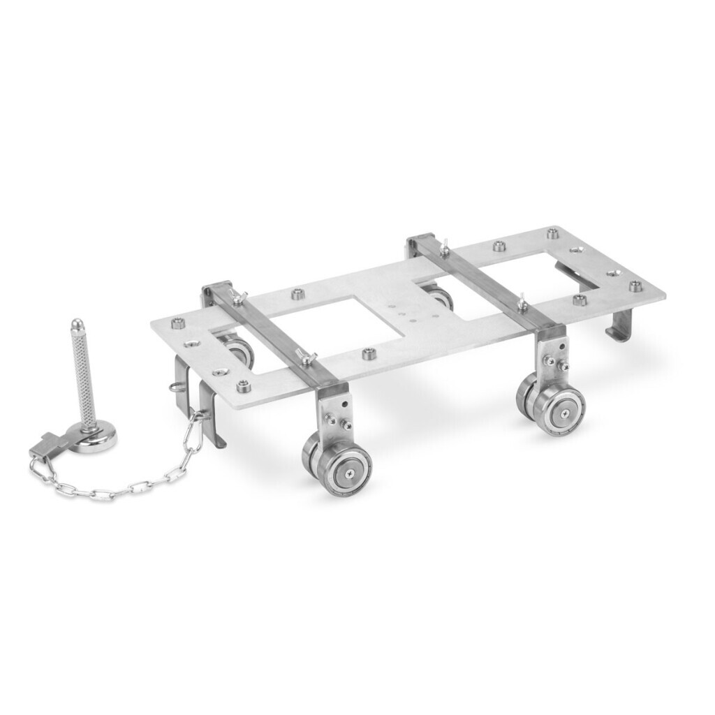 Конструкция приспособления позволяет использовать изделие с большим диапазоном диаметров контролируемых труб и предусматривает 2 варианта сборки: с узким и с широким положением колёс, а также дискретное изменение клиренса за счет перестановки стоек