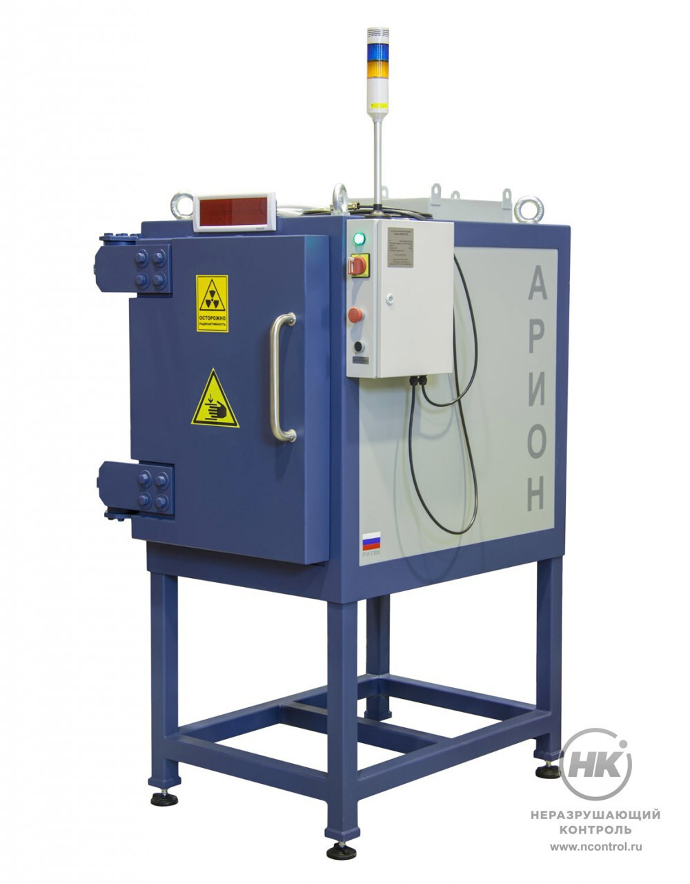 Кабина радиационной защиты выполнена из стали и свинца. Имеет одну распашную дверь для позиционирования рентгеновского аппарата на манипуляторе внутри кабины и загрузки объекта контроля. Для ввода кабеля питания и управления рентгеновским аппаратом предусмотрен специальный рентгенозащитный кабельный ввод. Камера изготавливается по ТУ 6968-014-96651179-2015.
