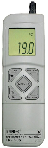 Термометр контактный цифровой ТК-5.06 предназначен для измерения температуры различных сред, относительной влажности воздуха путем непосредственного контакта зонда с объектом измерения. При использовании зондов влажности в термометрах предусмотрена возможность расчета температуры точки росы по формуле Гоффа - Грэтча. Диапазон измерений: от -199°C до +1300°C.