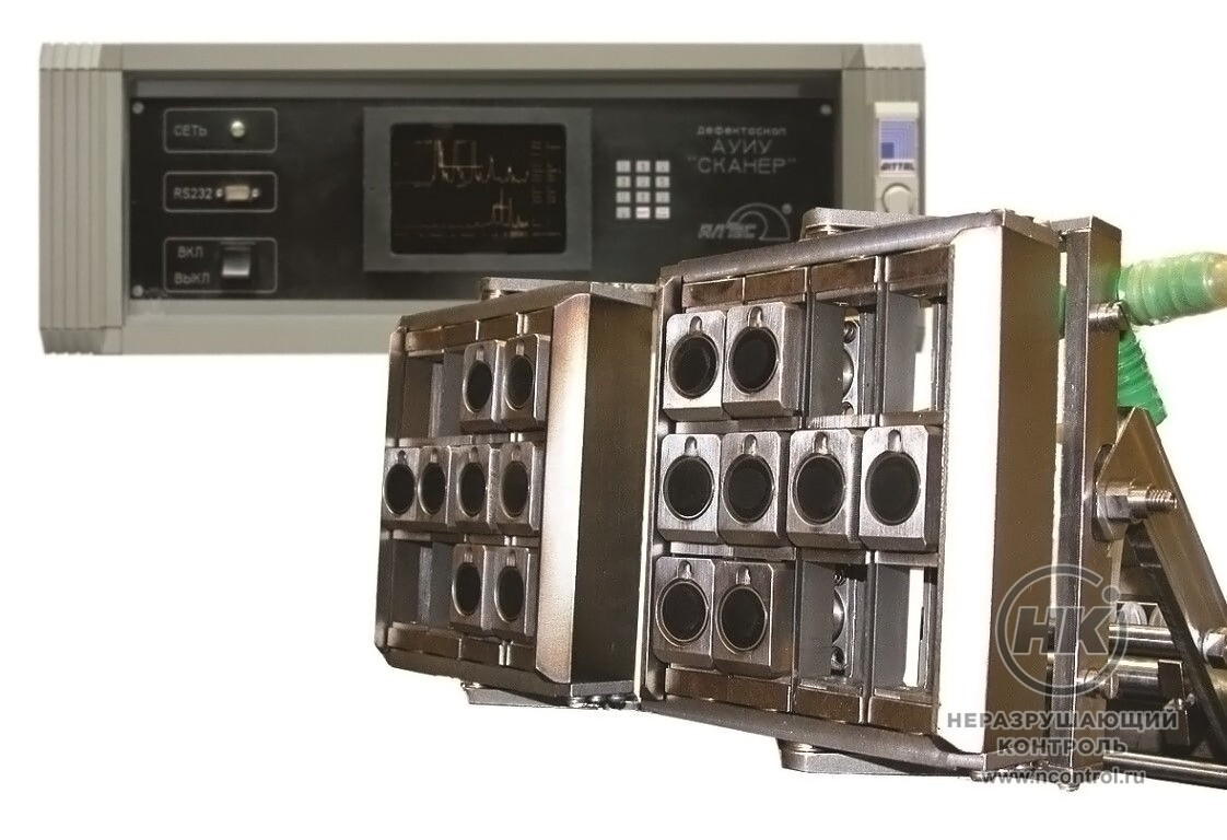 Автоматическая линия контроля АУИУ «СКАНЕР» предназначена для автоматизированного ультразвукового контроля методом продольных и спиральных сварных швов и околошовной зоны продольно- или спиральношовных труб диаметром 508...1420 х 6...40мм, изготовленных из низколегированных сталей типа Ст 3, 10, 16ГС, 17ГС, 17Г2С, 20 и др. с идентичными акустическими свойствами с целью обнаружения дефектов типа нарушений сплошности: трещин, непроваров, несплавлений, шлаковых включений, пор, неоднородностей продольной и поперечной ориентации, согласно нормативных требований API.