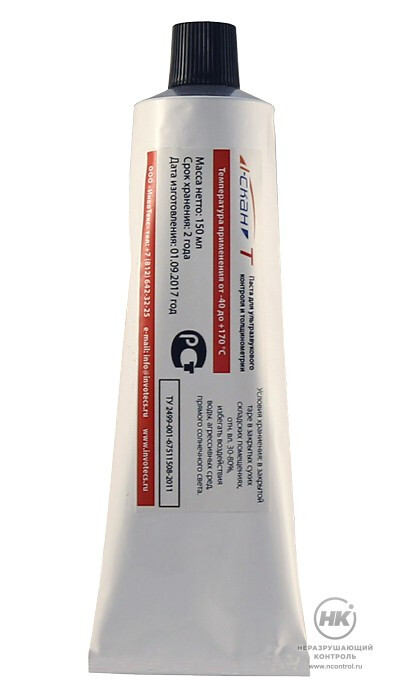 Паста для УЗ-контроля I-Скан Т предназначена для обеспечения хорошего акустического контакта между ультразвуковым датчиком и горячей контролируемой поверхностью притемпературах до +170 °С.
