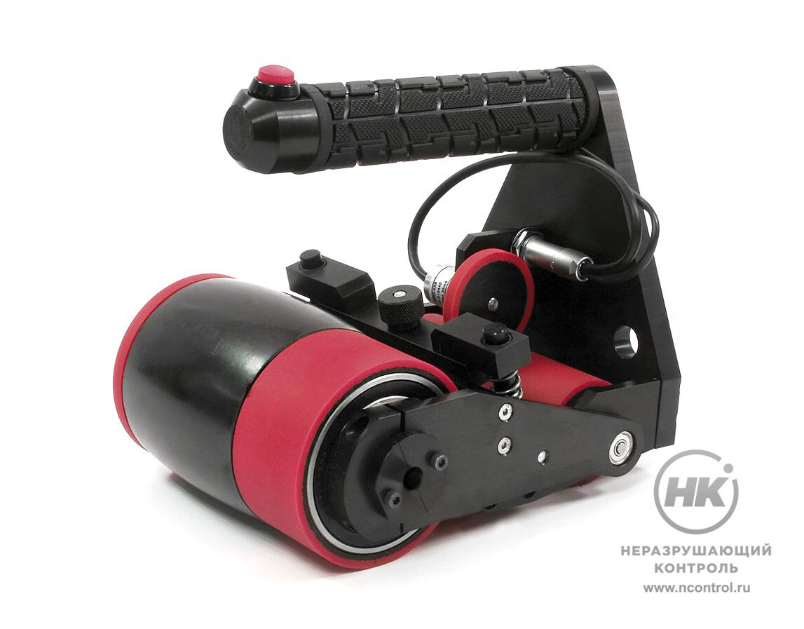 Роликовый датчик с фазированной решёткой подходит для ручного сканирования плоских и мало изогнутых объектов. Оснащён кодировщиком пути высокого разрешения.