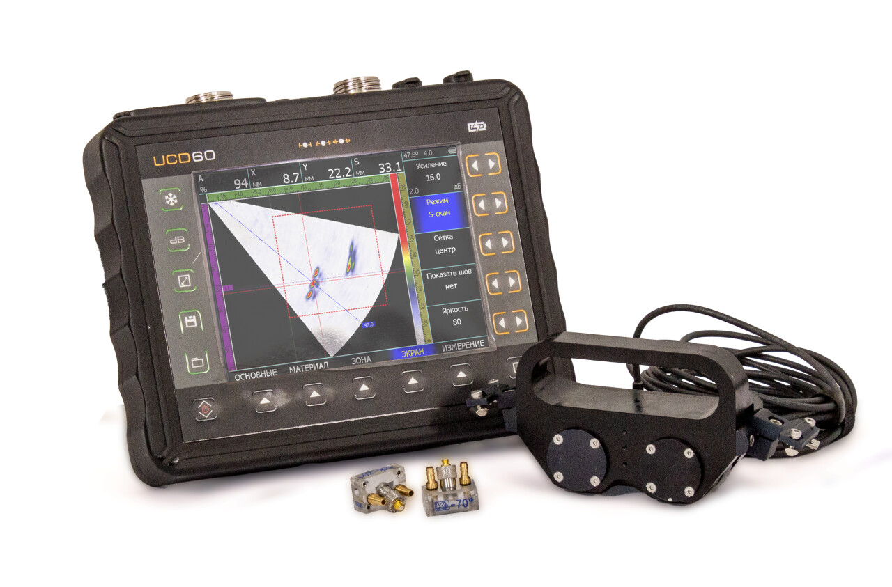 УСД-60ФР-16/128 оснащен программным пакетом для автоматизированного сбора данных и обработки изображений с разложением в трехмерном виде позволяет наглядно визуализировать контроль. Так же в приборе реализована функция обычного классического дефектоскопа.