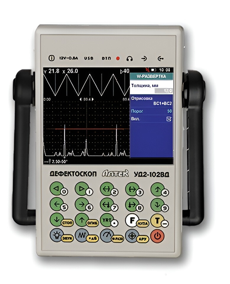 Ультразвуковой дефектоскоп УД2-102ВД предназначен для поиска дефектов в изделиях из металлов, сплавов и неметаллов. Представляет информацию в виде А-развертки, W-развертки и В-развертки. Выпускается в вагонной, локомотивной, нефтегазовой версиях, а также в версиях для метрополитена, приёмочного контроля, путевых машин и рельсового хозяйства.