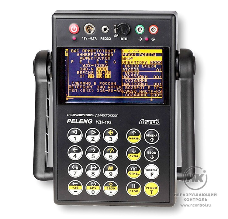 Ультразвуковой дефектоскоп УД3-103 предназначен для обнаружения нарушений в металлах и сварных соединениях различных конструкций, а также измерения толщины и проверки электропроводящих изделий, с последующей параметризацией и регистрацией в запоминающем устройстве характеристик выявленных дефектов. Имеет вихретоковые каналы. Снят с производства. Замена — дефектоскоп УД3-103ВД.