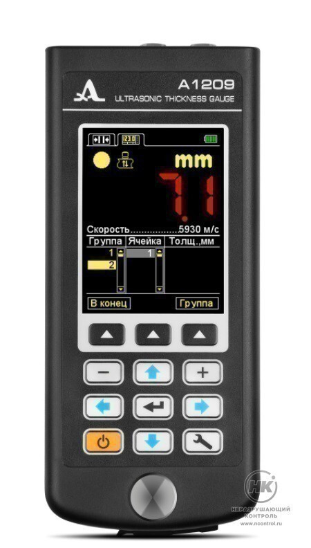 А1209 — портативный ультразвуковой толщиномер общего назначения. Предназначен для проведения толщинометрии плоских стенок объектов и стенок труб по стали, алюминию, стеклу и композитным материалам с высоким затуханием ультразвука. Работает с прямыми совмещёнными и раздельно-совмещёнными преобразователями частотой от 4 до 10,0 МГц. Измеряет толщину в диапазоне от 0,7 до 300 мм по стали.