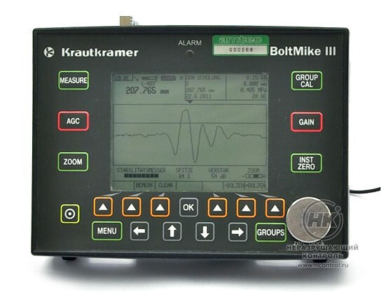 Ультразвуковой измеритель BoltMike предназначен для измерения напряжения и усилия зажима резьбовых соединений. Диапазон контролируемых длин болтов от 19 до 6350 мм. Снят с производства. Замена — УД4-Т «Томографик».