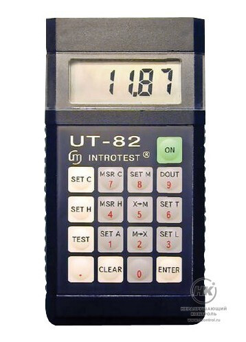 Ультразвуковой толщиномер УТ-82 имеет встроеннную память и предназначен для измерения толщины изделий из звукопроводящих материалов при одностороннем доступе к объекту контроля. Диапазон измерений от 0,6 до 300 мм. Снят с производства. Замена — толщиномер УТ-111.