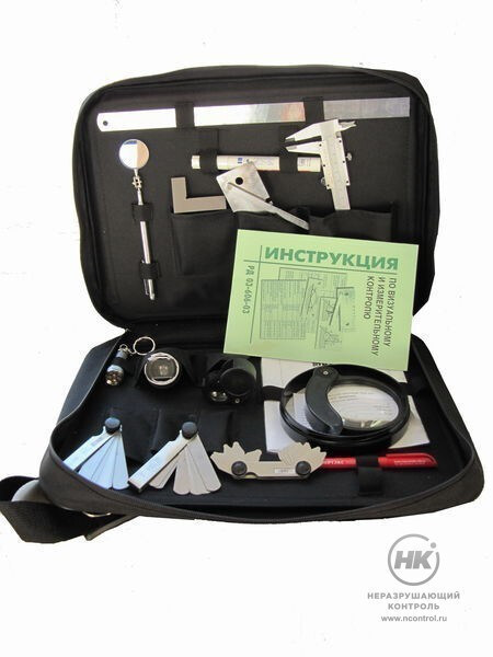 С помощью набора ВИК можно вести визуальный контроль основного металла, готовить детали к сварке. Комплект помогает при сборки соединительных деталей под сварку: сварных соединений и наплавок.