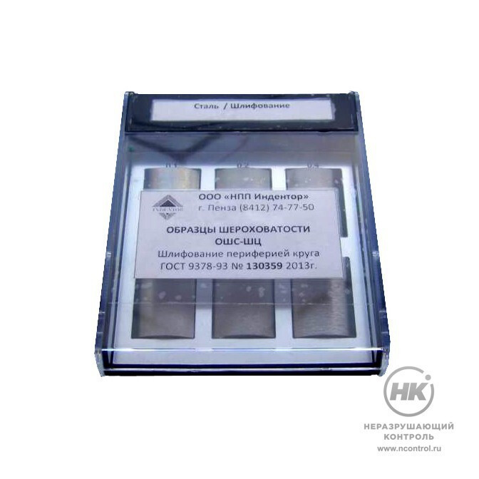 ОШС-ШП, ОШС-ШЦ, ОШС-ШЦВ, ОШС-ШТ, ОШС-ШЧ — металлические образцы с эталонными параметрами шероховатости для обработки шлифованием. Применяются на машиностроительных, приборостроительных, ремонтных предприятиях для контроля шероховатости поверхности на различных производственных этапах. Изготовлены согласно ГОСТ 9378-93.