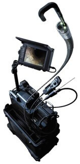 К видеоскопу IPLEX SX выпускается также сменные рабочие части Ø4,4 мм длиной 4 метра и Ø6,2 мм длиной 3,5 метра — с внутренним инструментальным каналом. Зонд Ø6,2 х 3500мм может использоваться совместно с транспортным приспособлением (крюком, облегчающим введение и фиксацию зонда при осмотре лопаток турбин). Вместо крюка может быть также использован гибкий инструмент (захваты различных типов) для извлечения из труднодоступных полостей посторонних предметов (см. ниже).